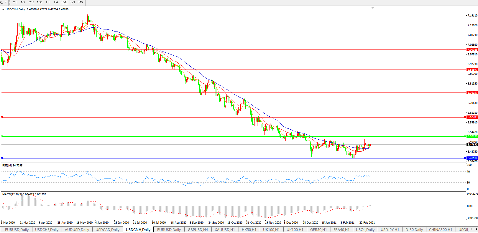 备选策略: 在6.5200之上,看涨,目标价位为6.6300,然后为6.7615。
