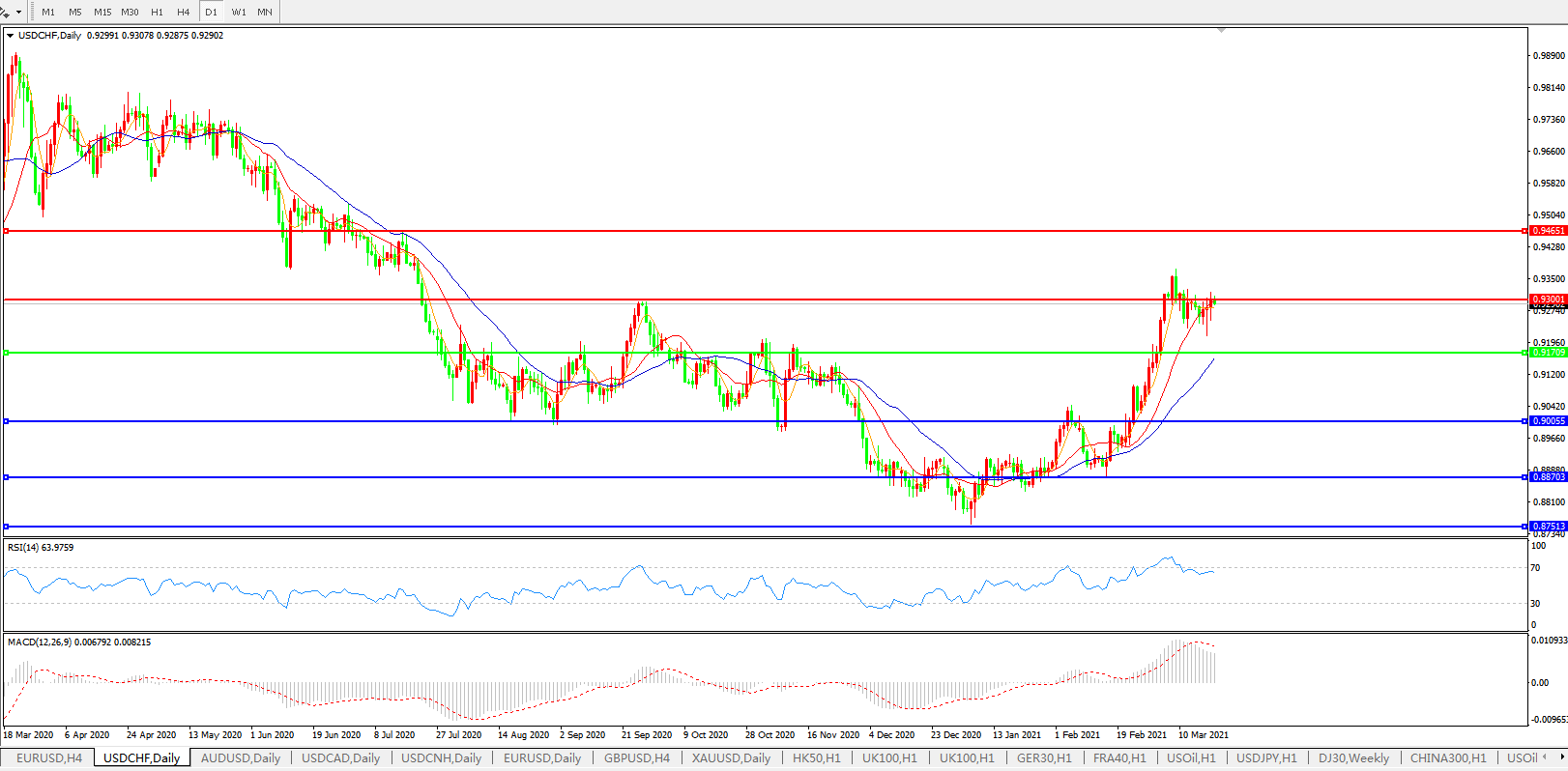 美元兑瑞郎USDCHF    日线图: