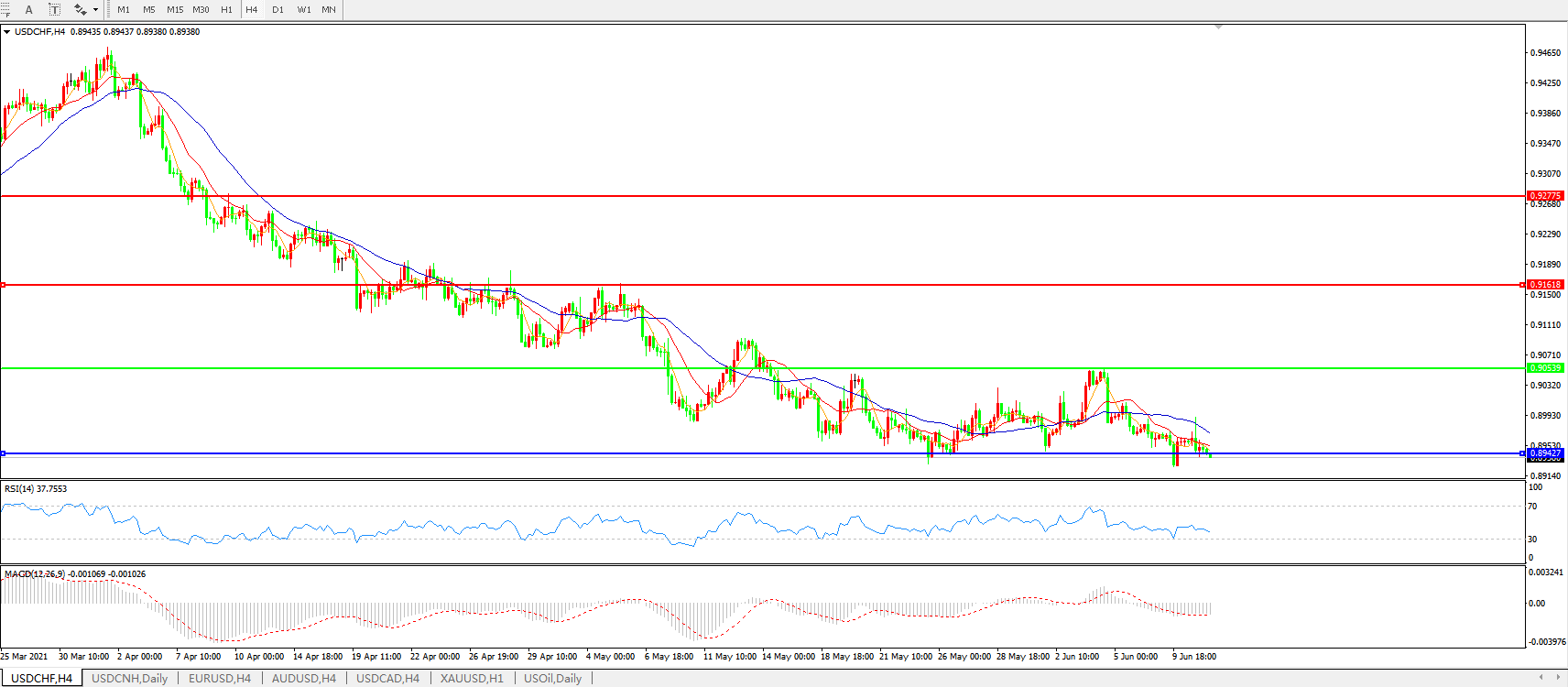 美元兑瑞郎USDCHF 4小时图: