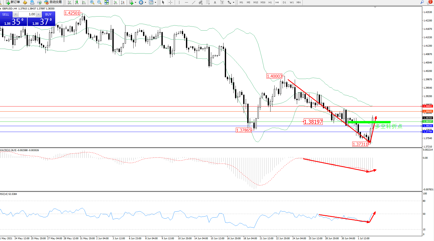 交易策略:1.38197上方看涨,目标1.38600、1.38802