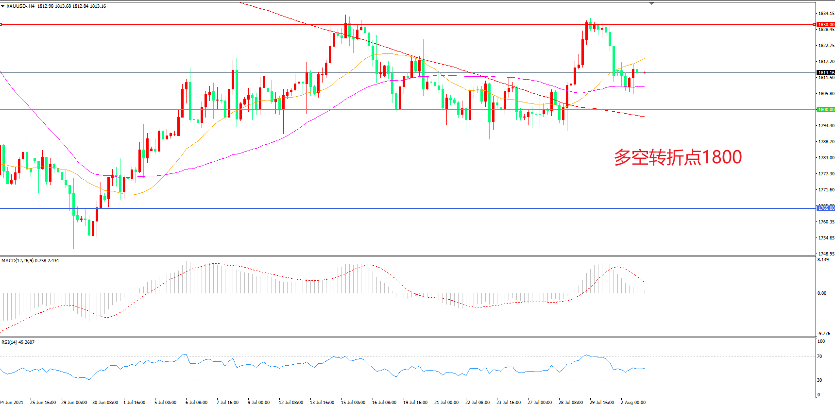 多空转折点:1800.00