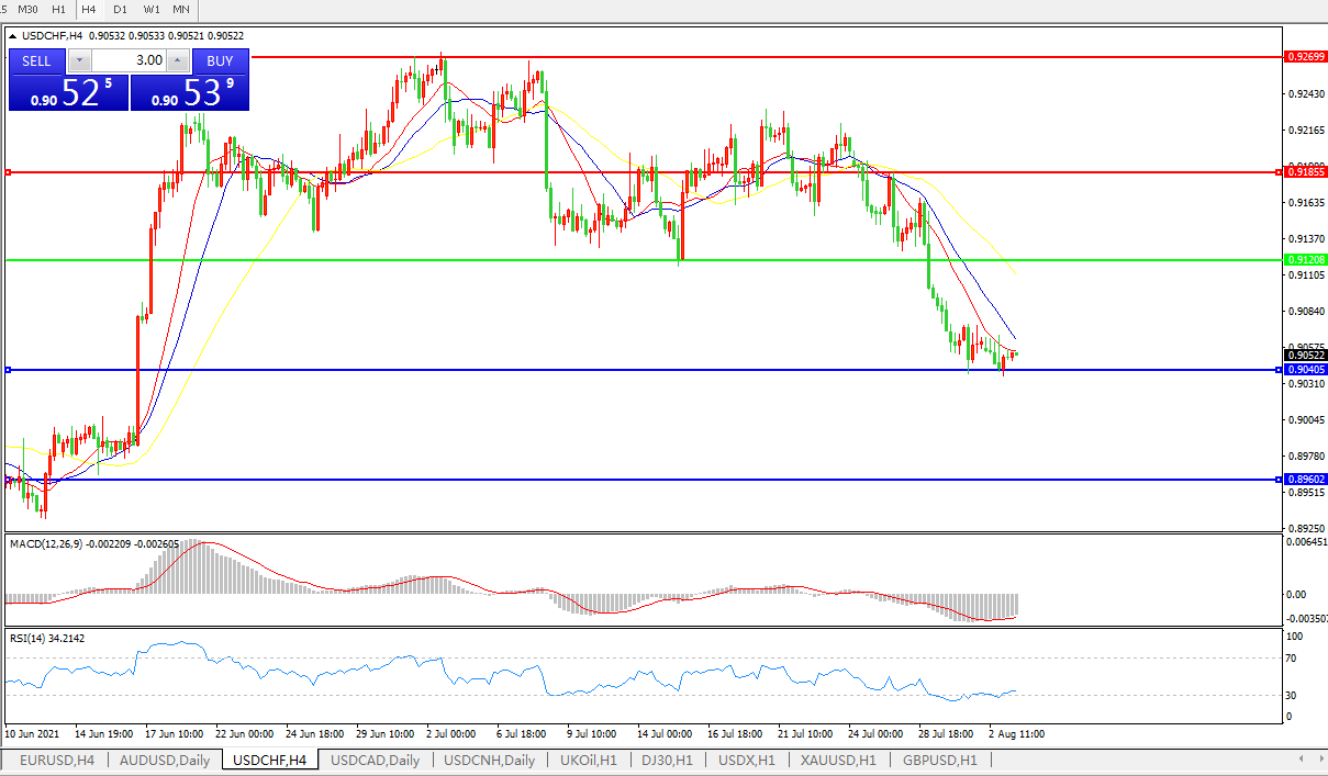 美元兑瑞郎USDCHF 4小时图: