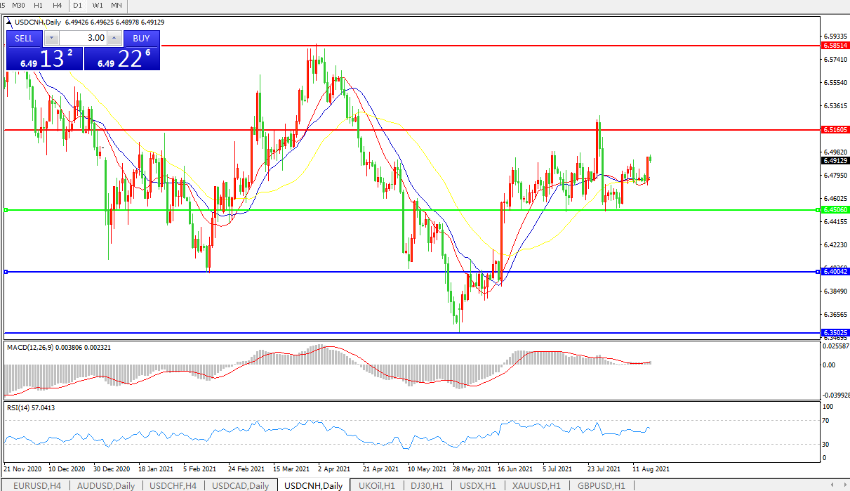备选策略:在6.4505之下,看跌,目标价位为6.4000,然后为6.3500。