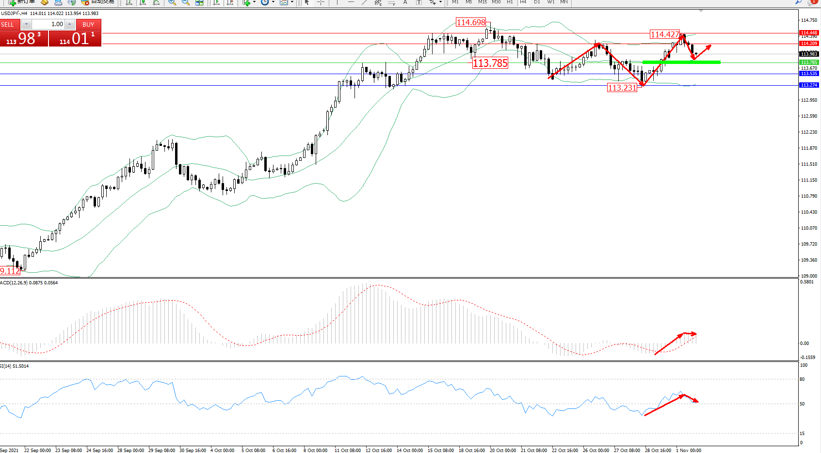 交易策略:113.785上方看涨,目标114.209、114.448