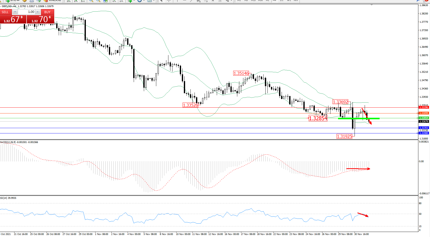 交易策略:1.32854下方看跌,目标1.32351、1.32080