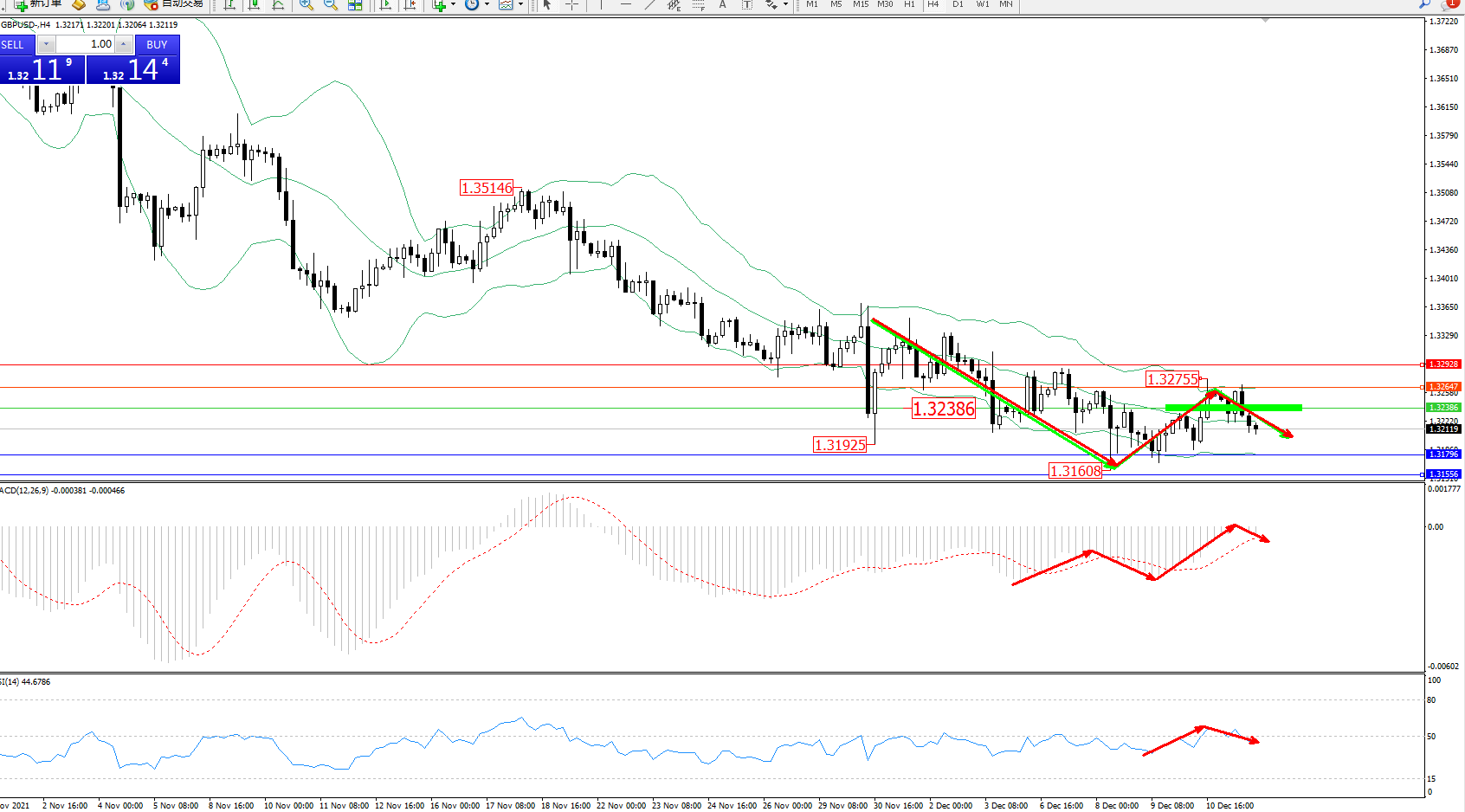交易策略:1.32386下方看跌,目标1.31796、1.31556
