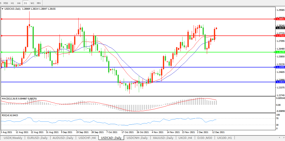 美元兑加元一度上涨0.8%,至1.2820加元,创下12月份最大涨幅;受到投机性和交叉货币相关买盘以及原油价格疲软的推动。欧元兑加元涨0.4%至1.4453,加拿大央行Tiff Macklem表示央行致力于实现通胀目标之后,加元仍保持普遍走低态势。