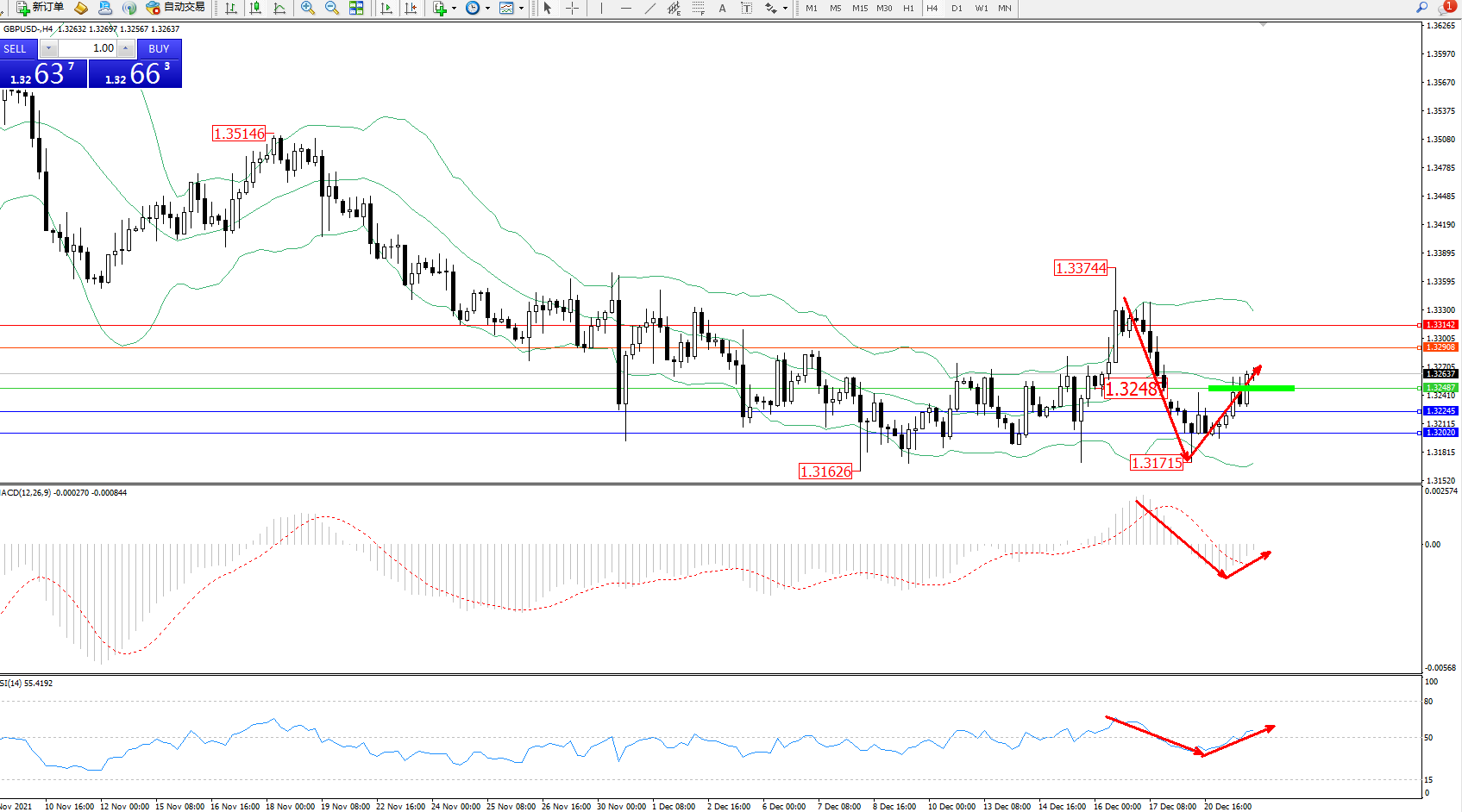交易策略:1.32487上方看涨,目标1.32908、1.33142