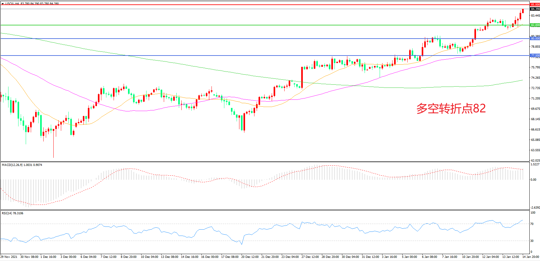 交易策略:在82.00之上看涨,目标85.00 88.00