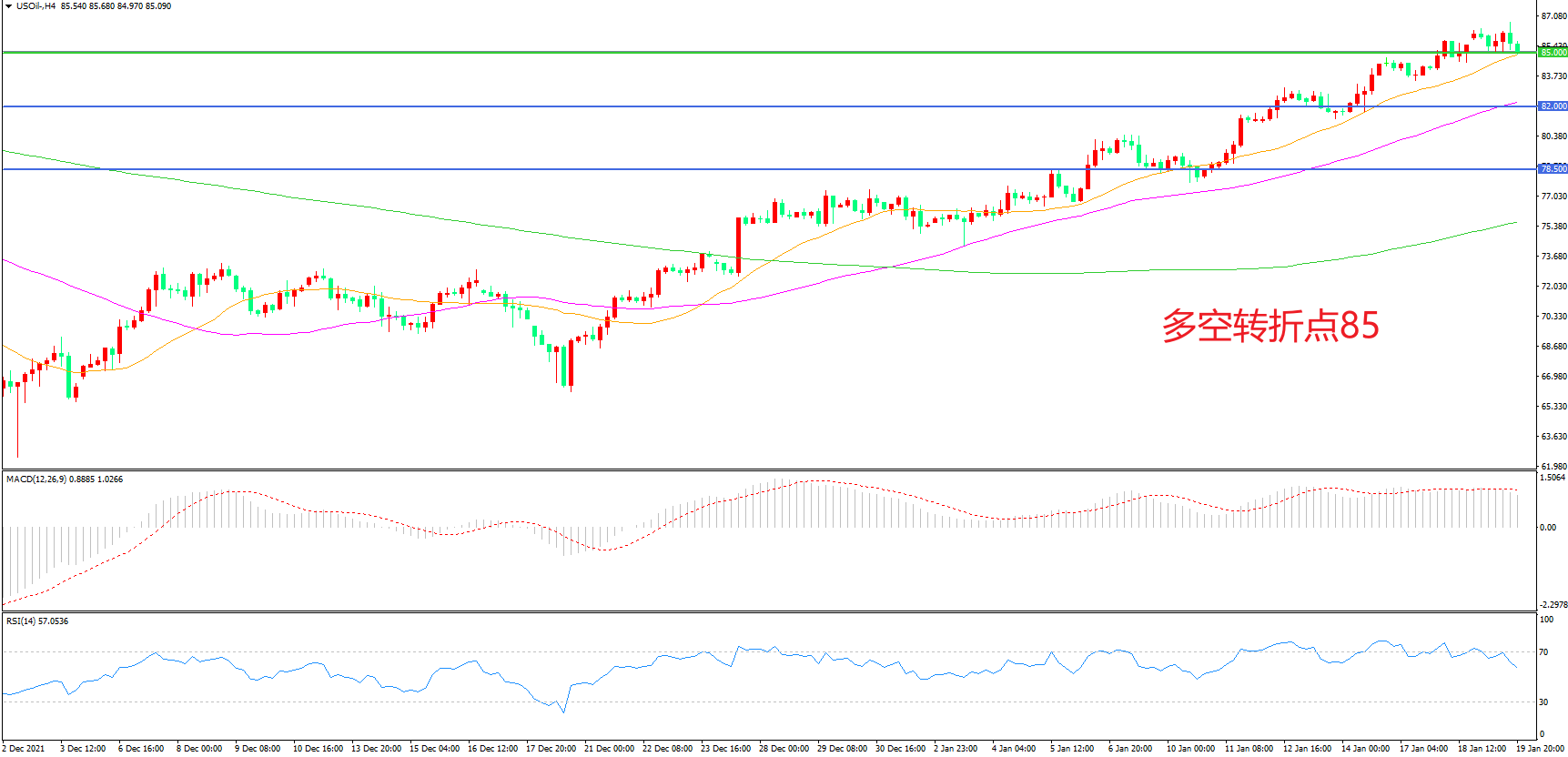 多空转折点:85.00