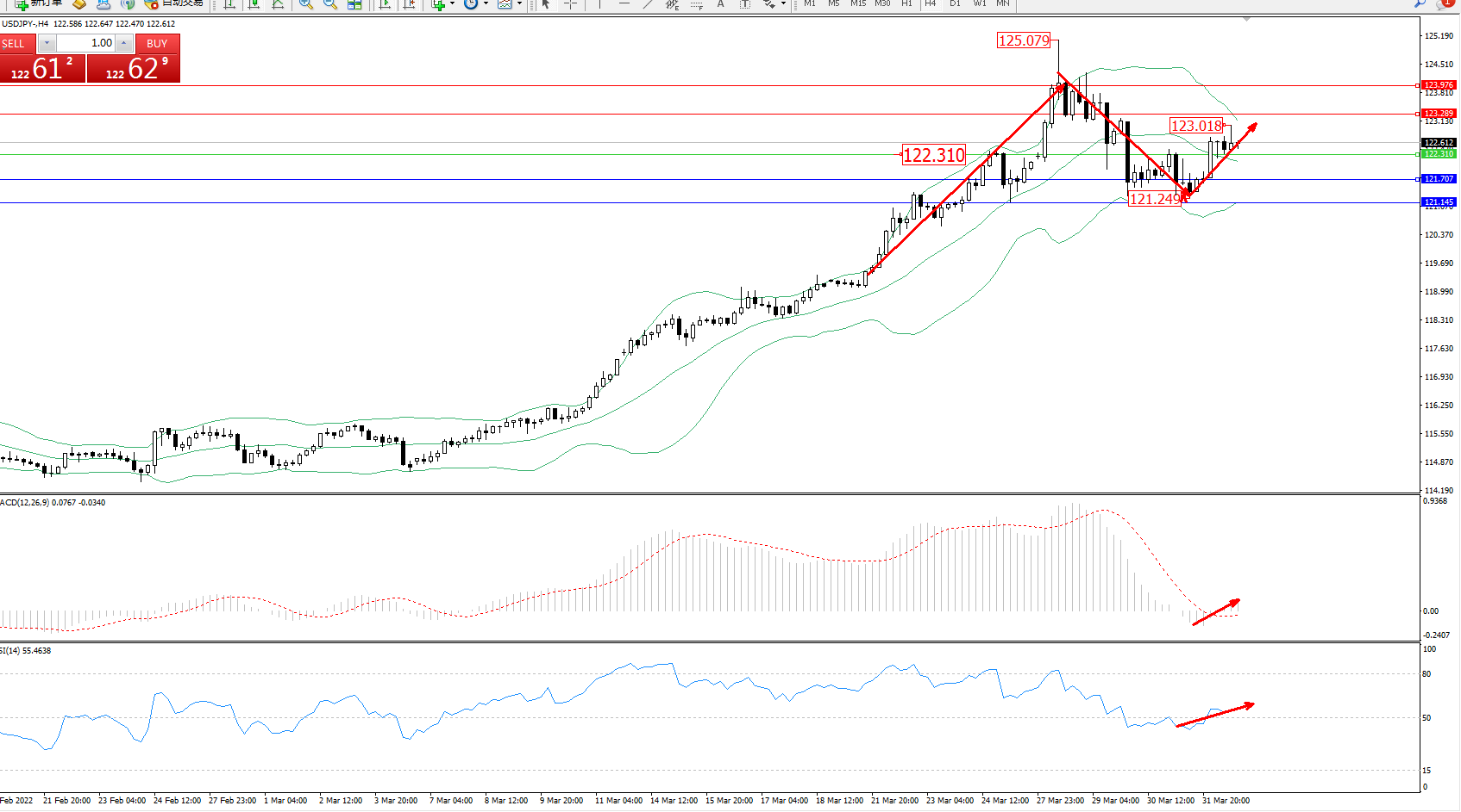 交易策略:122.310上方看涨,目标123.289、123.976