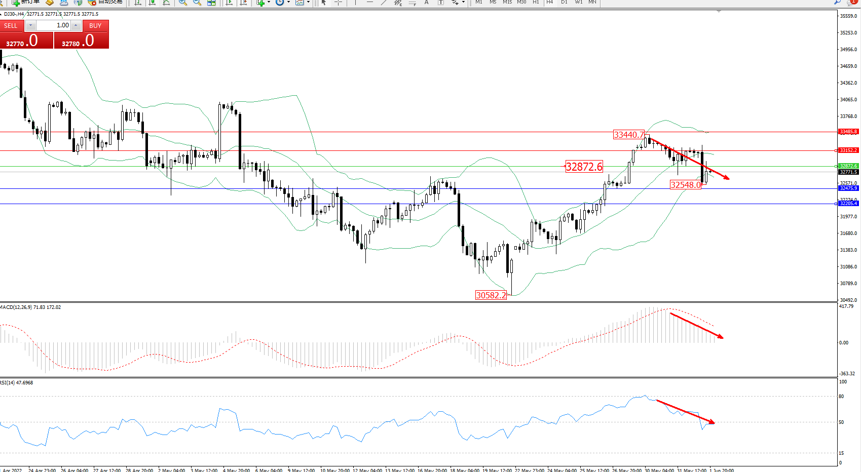 交易策略:32872下方看跌,目标32475、32205