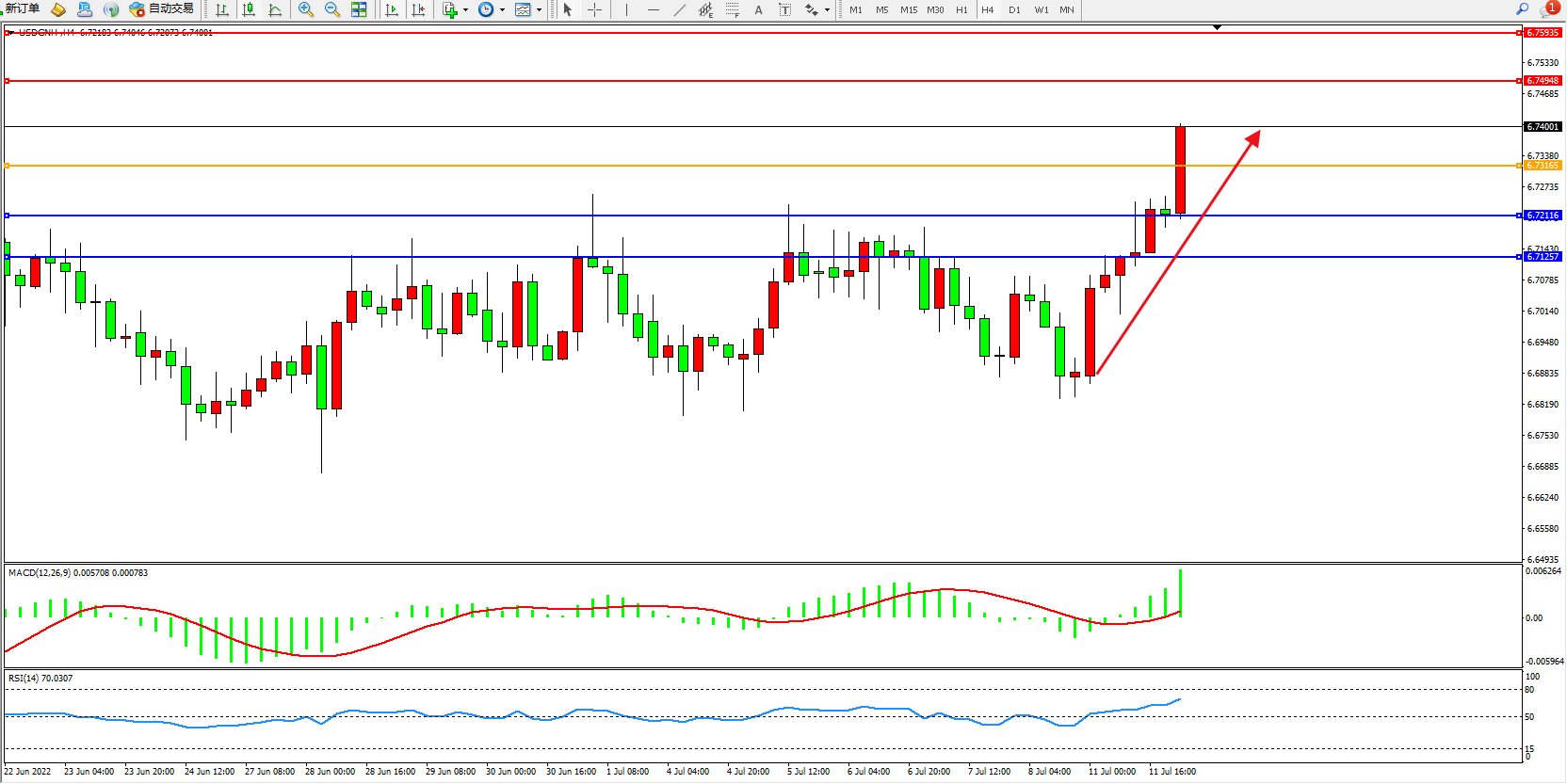 备选策略:6.73165上方看涨,目标6.74948、6.75935