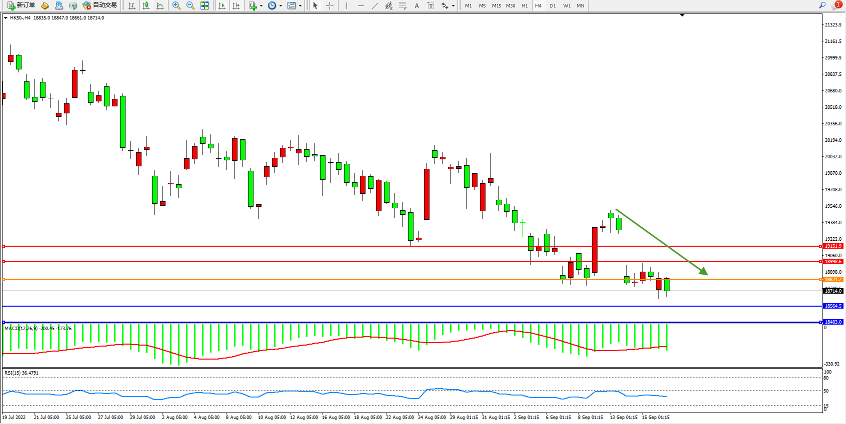 恒指HK50 4小时图