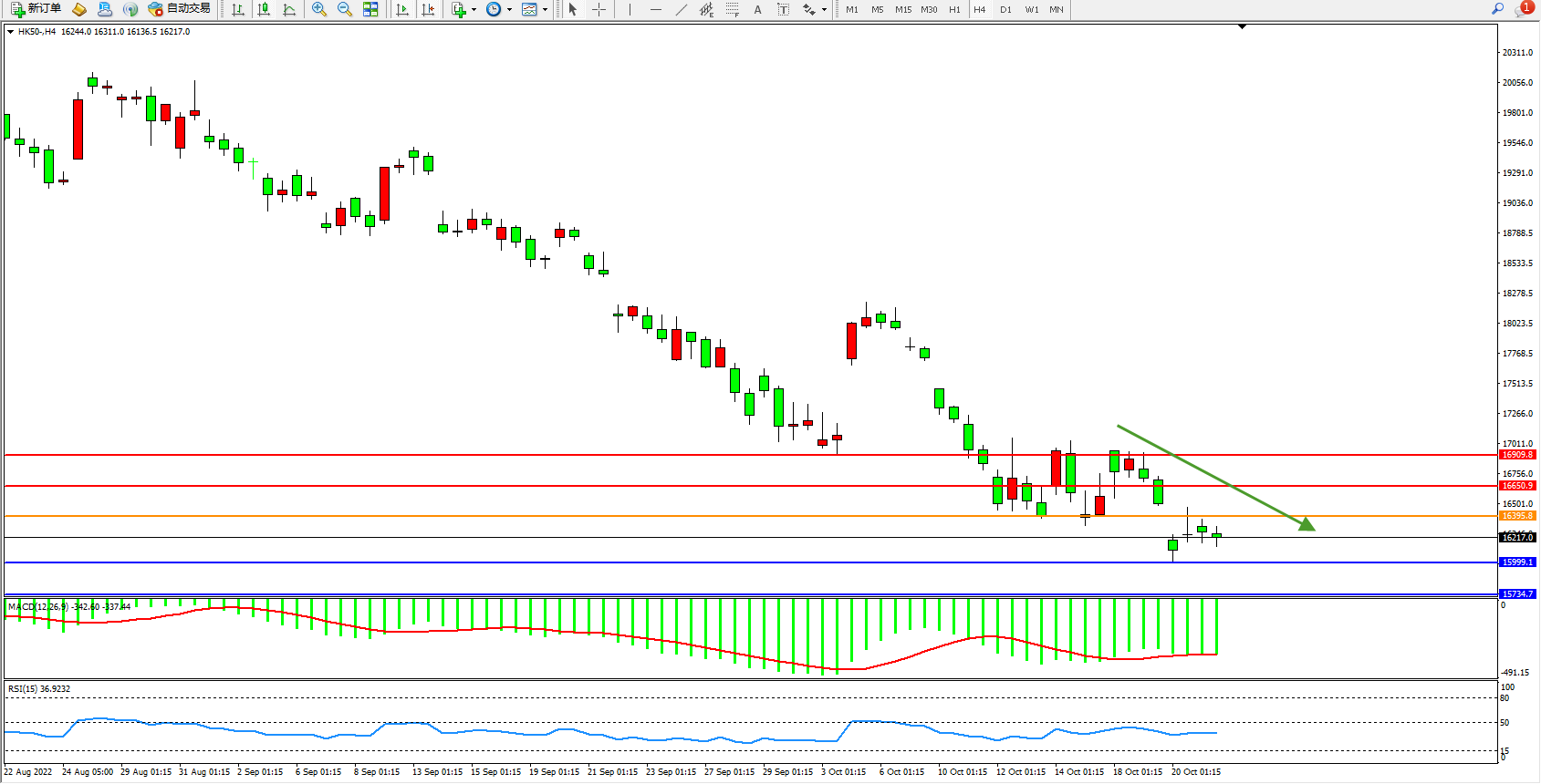 恒指HK50 4小时图