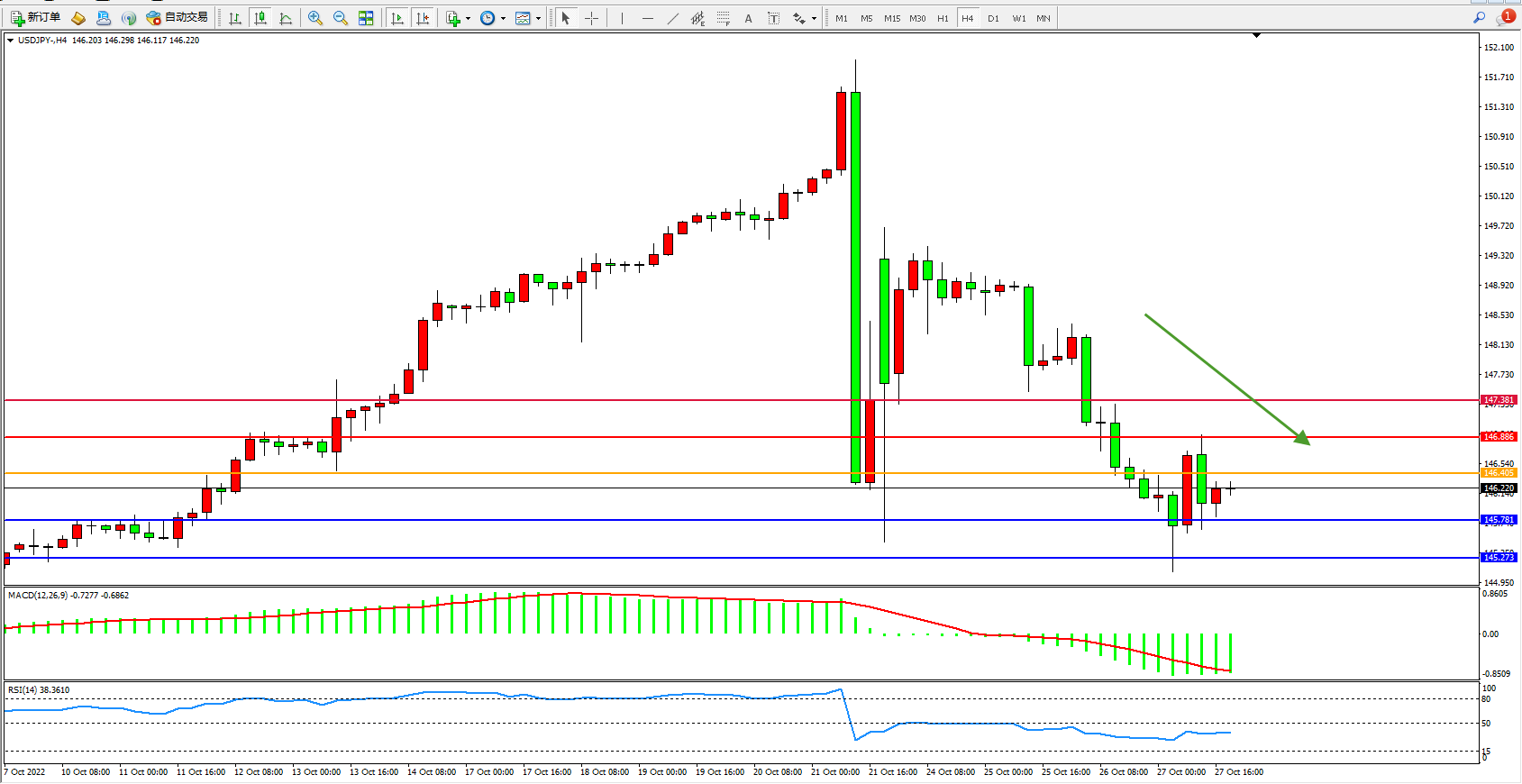 美元兑日圆维持146.220附近震荡,日本官员仍对是否公开证实将进行第二次干预以捍卫日元守口如瓶。日圆兑美元大幅走强,至约146左右。上周,日圆兑美元下破了150日水平,创下1990年8月以来的最低水平。
