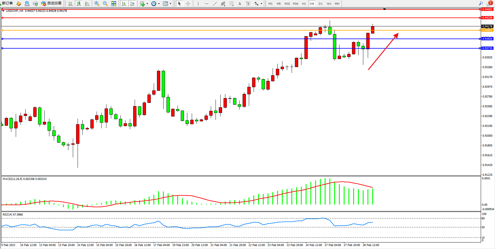 美元瑞郎USDCHF——4小时K线图显示: