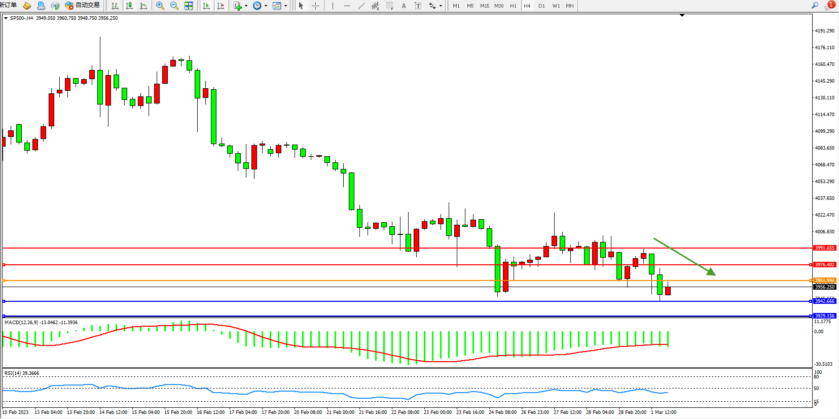 标普SP500——4小时K线图显示: