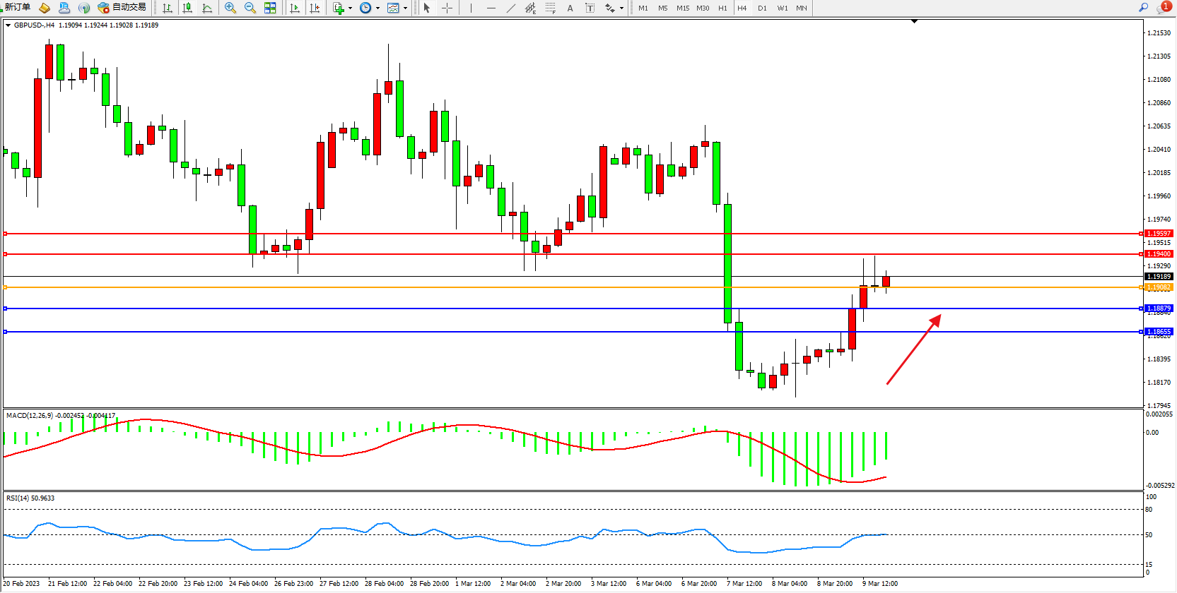 交易策略:1.19082上方看涨,目标1.19400 1.19597