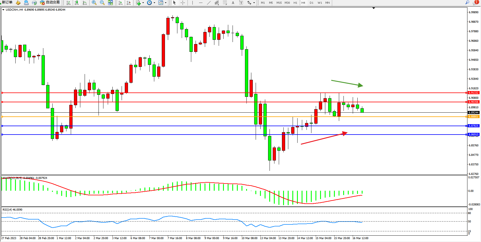 交易策略:6.88801上方看涨,目标6.90356  6.91332