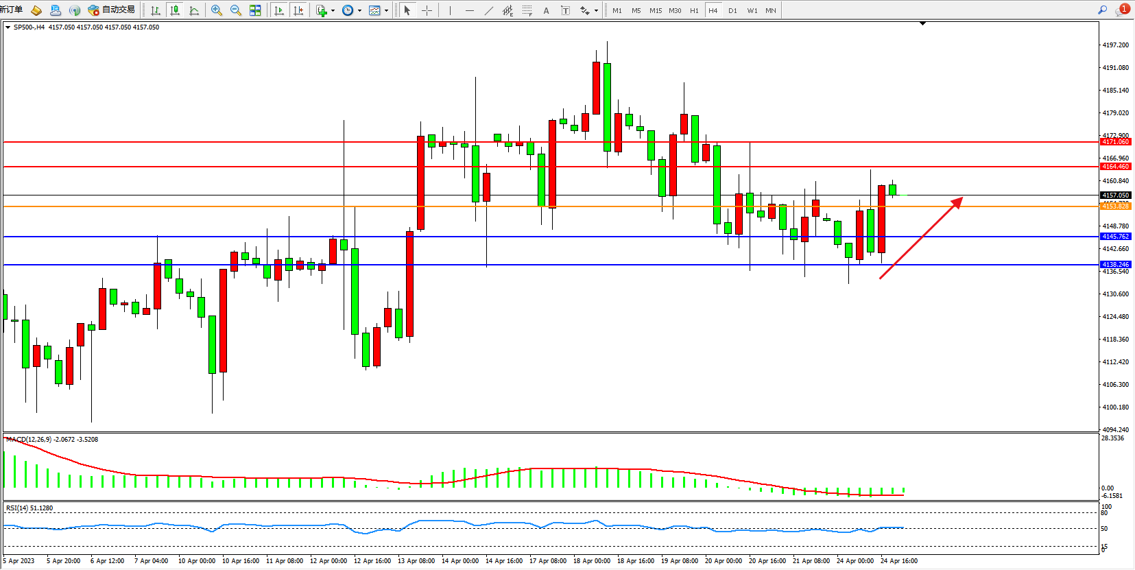 标普SP500——4小时K线图显示: