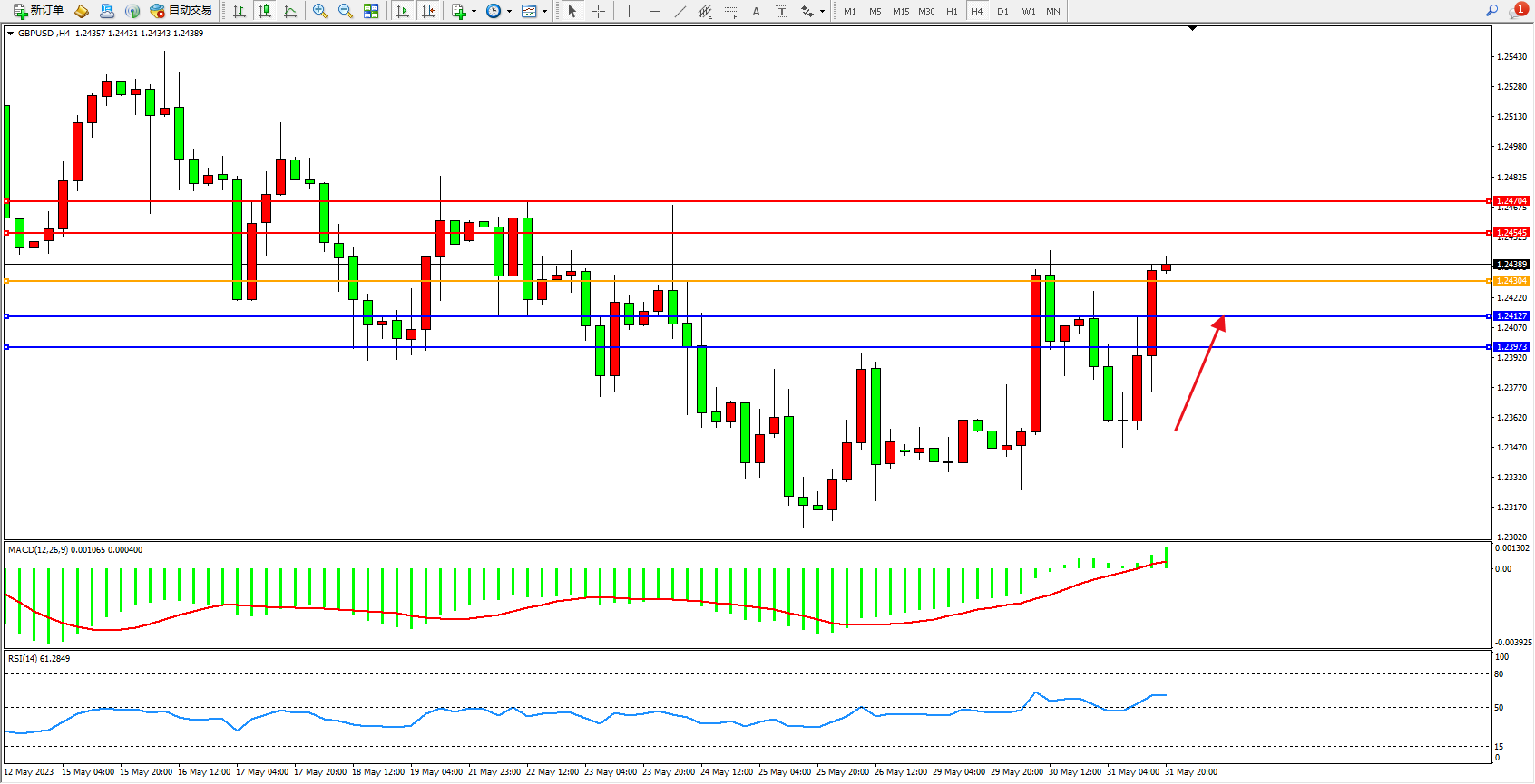 阻力位:1.24545  1.24704