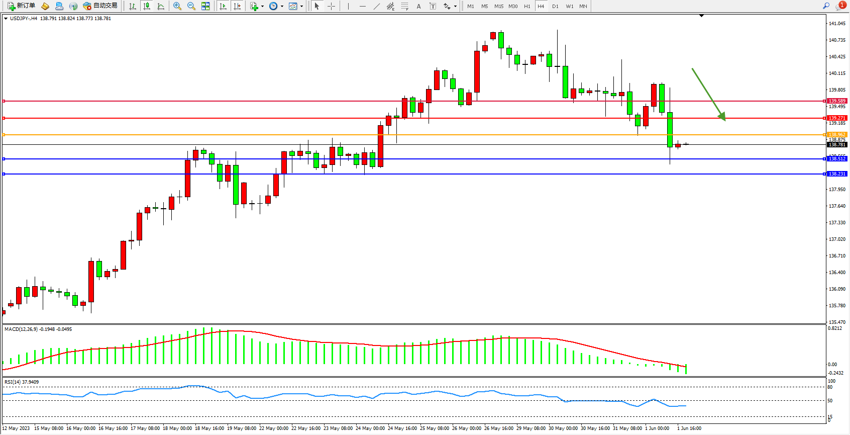 交易策略:138.962下方看跌,目标138.512 138.231