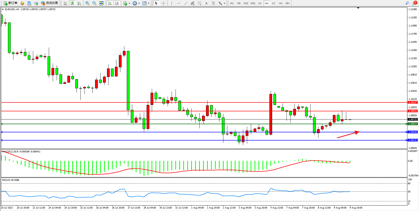交易策略:1.09624上方看涨,目标1.09933  1.10137