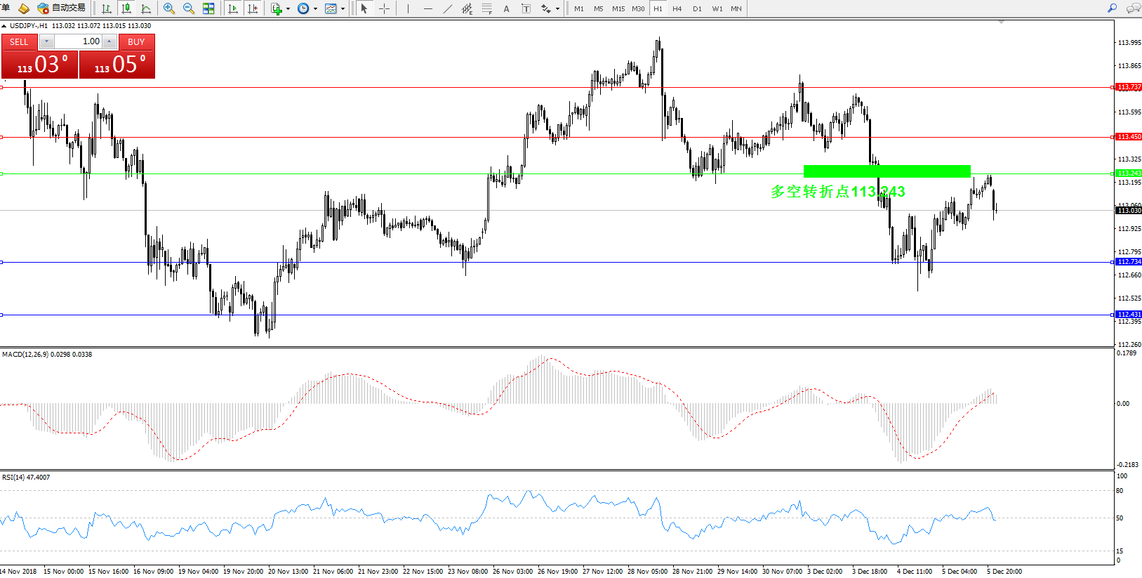 备选策略:113.423下方看跌,目标112.73、112.431