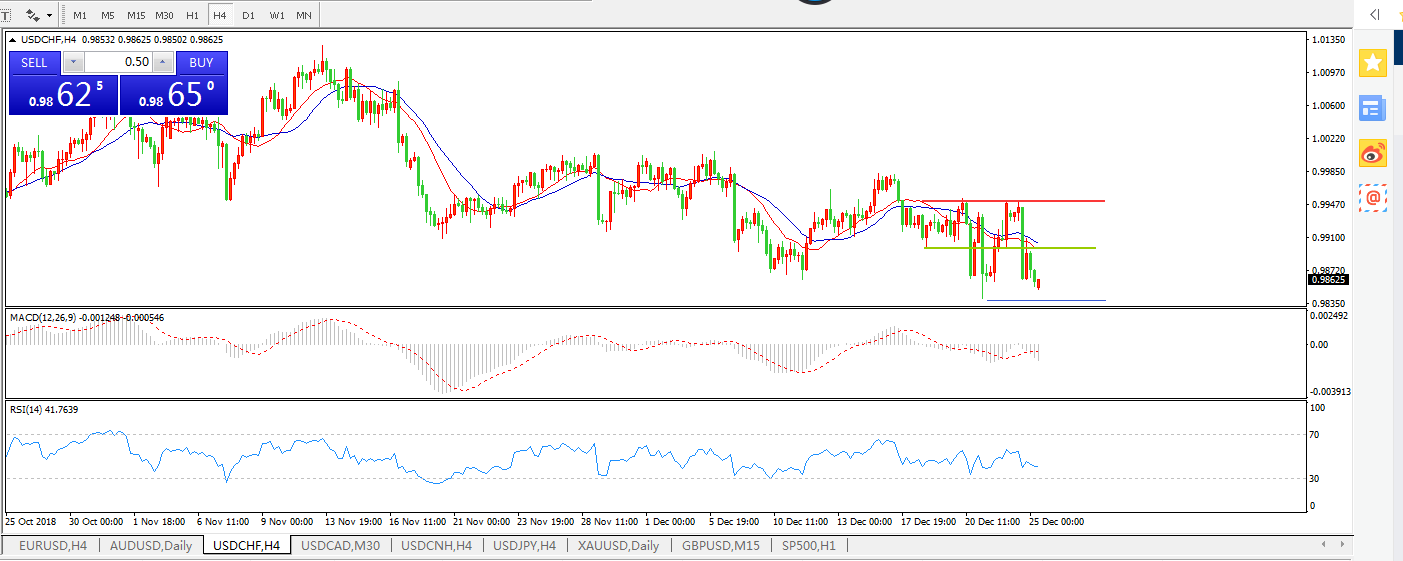 美元兑瑞郎USDCHF4小时图
