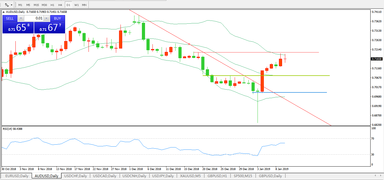 技术面简析:布林带开口开始拐头,价格升穿布林中轨试探布林中轨,RSI拐头向上攻击,下降趋势线被击破,预计短期汇价将延续上行态势。