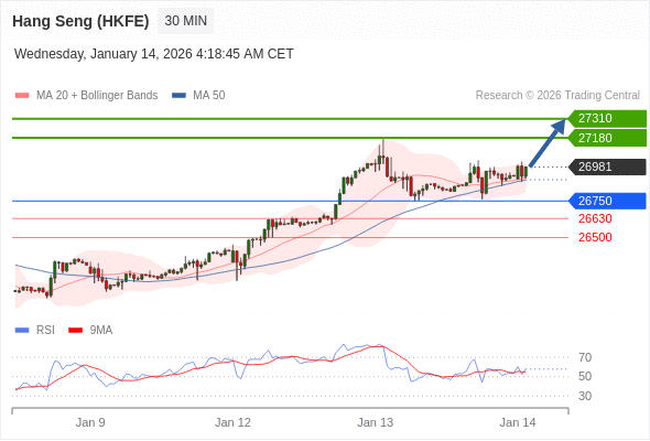 在 26750 之上,看涨,目标价位为 27180 ,然后为 27310 。