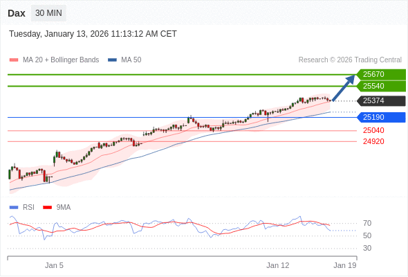 在 25190 之上,看涨,目标价位为 25540 ,然后为 25670 。