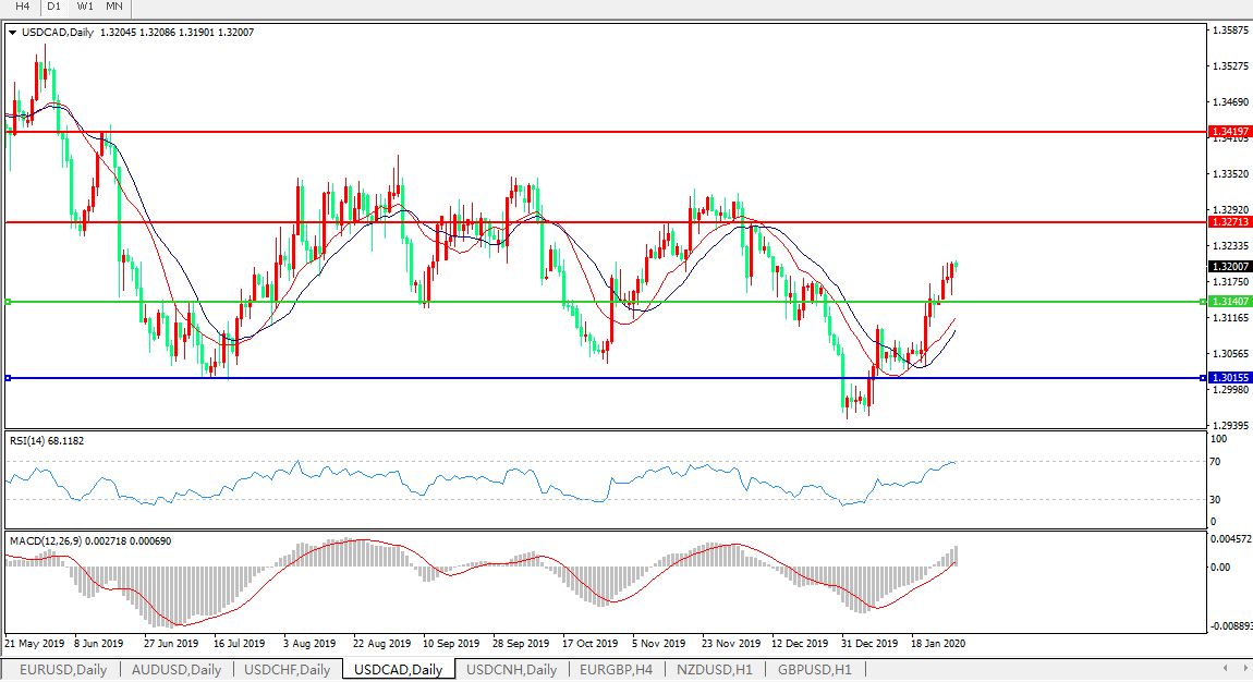 技术面简析:日线图均线呈多头排列,汇价延续上攻态势,MACD开始走升且量能0轴上方持续放量,RSI震荡中走高,预计汇价短期大概率将延续整理上行态势,重点关注1.3140附近支撑是否持续有效。