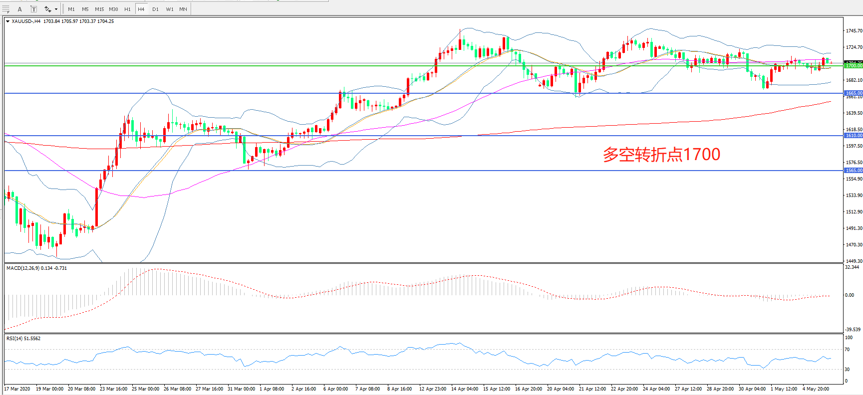 多空转折点:1700.00