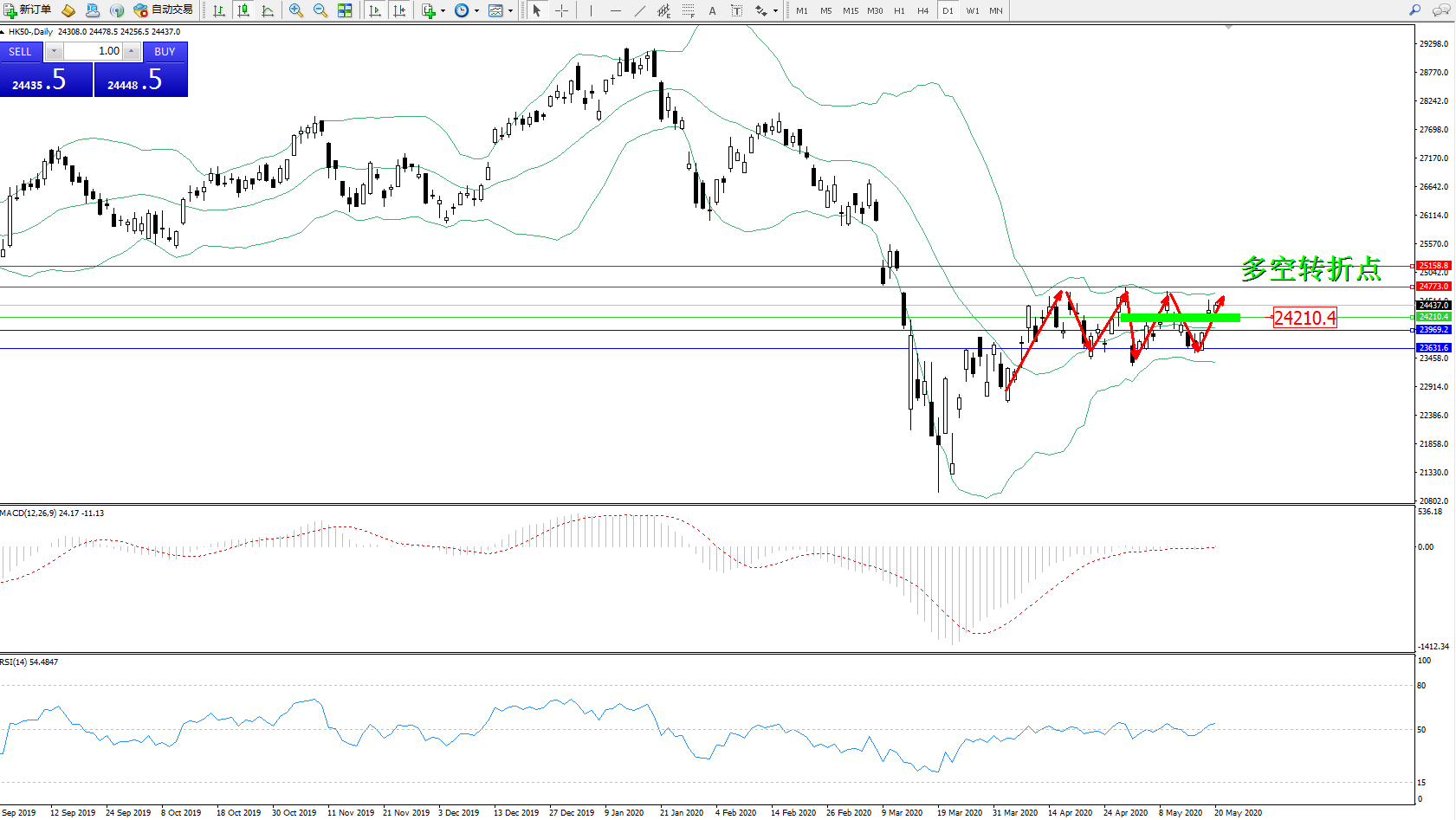 恒指HK50 ——日K线图显示: