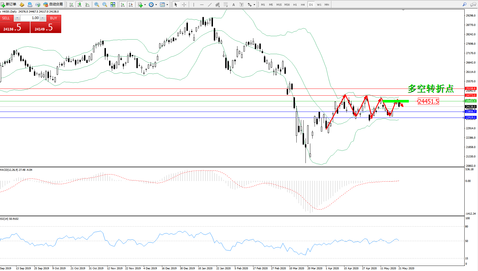 恒指HK50 ——日K线图显示: