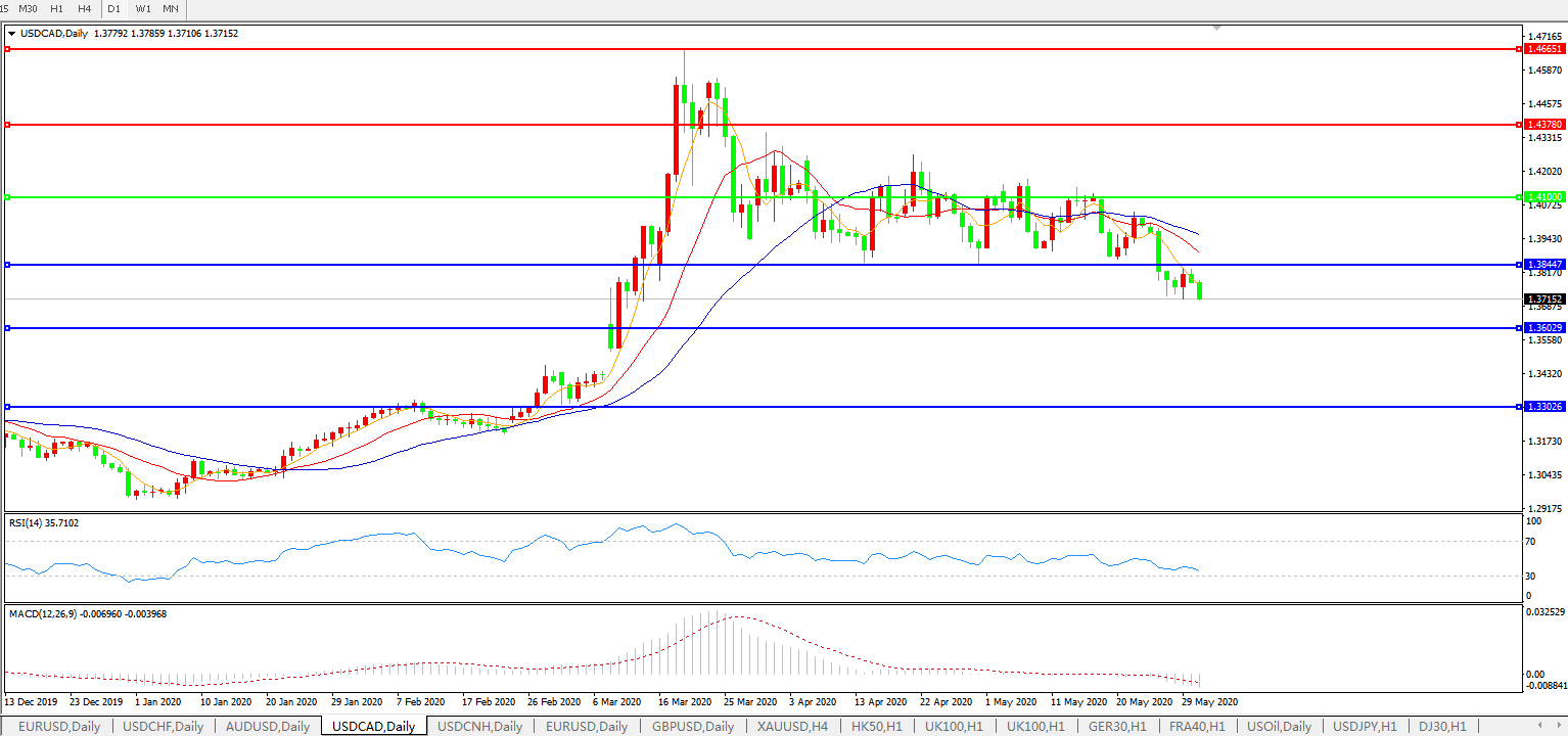 美元兑加元USDCAD 日线图: