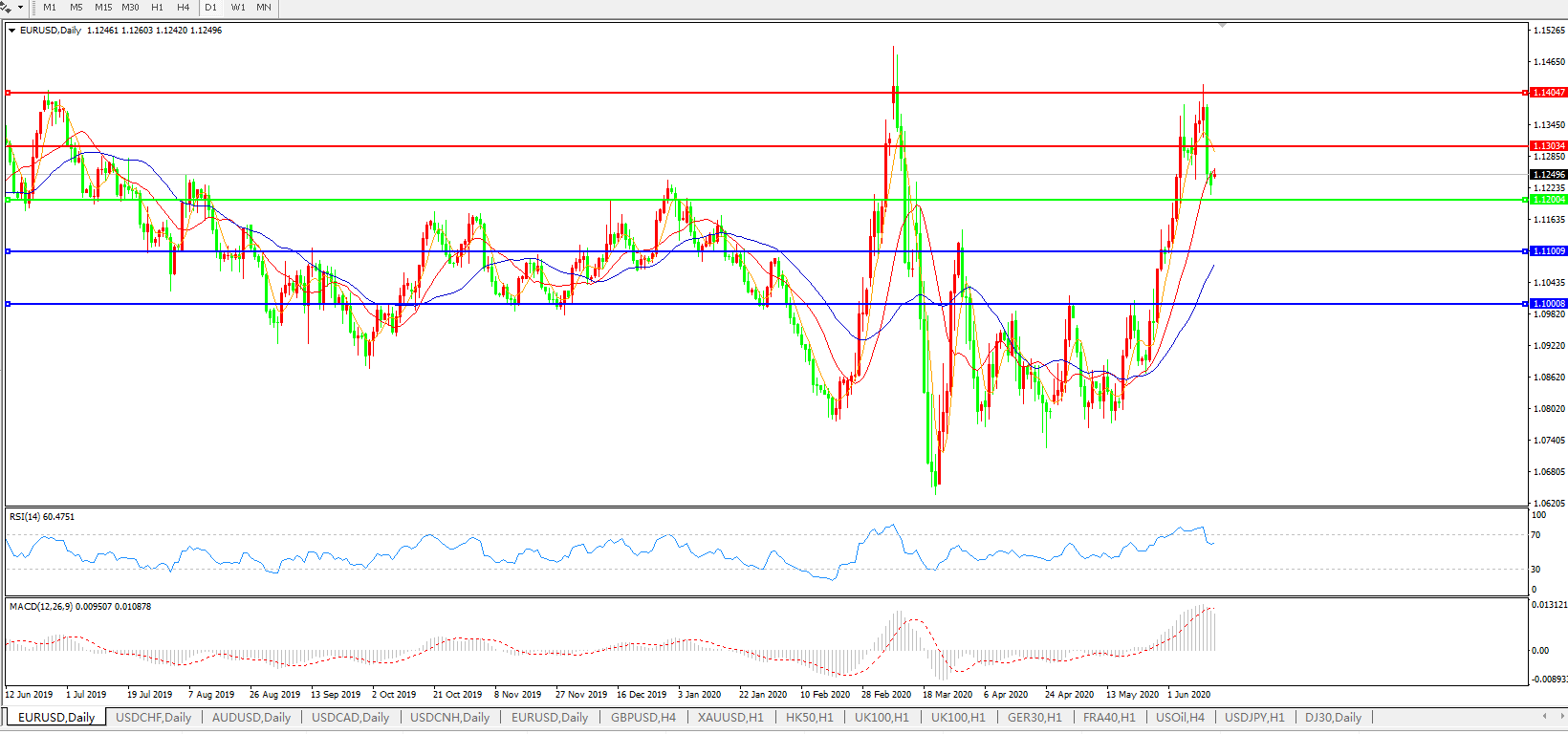 交易策略:1.1200上方看涨,目标1.1300、1.1400
