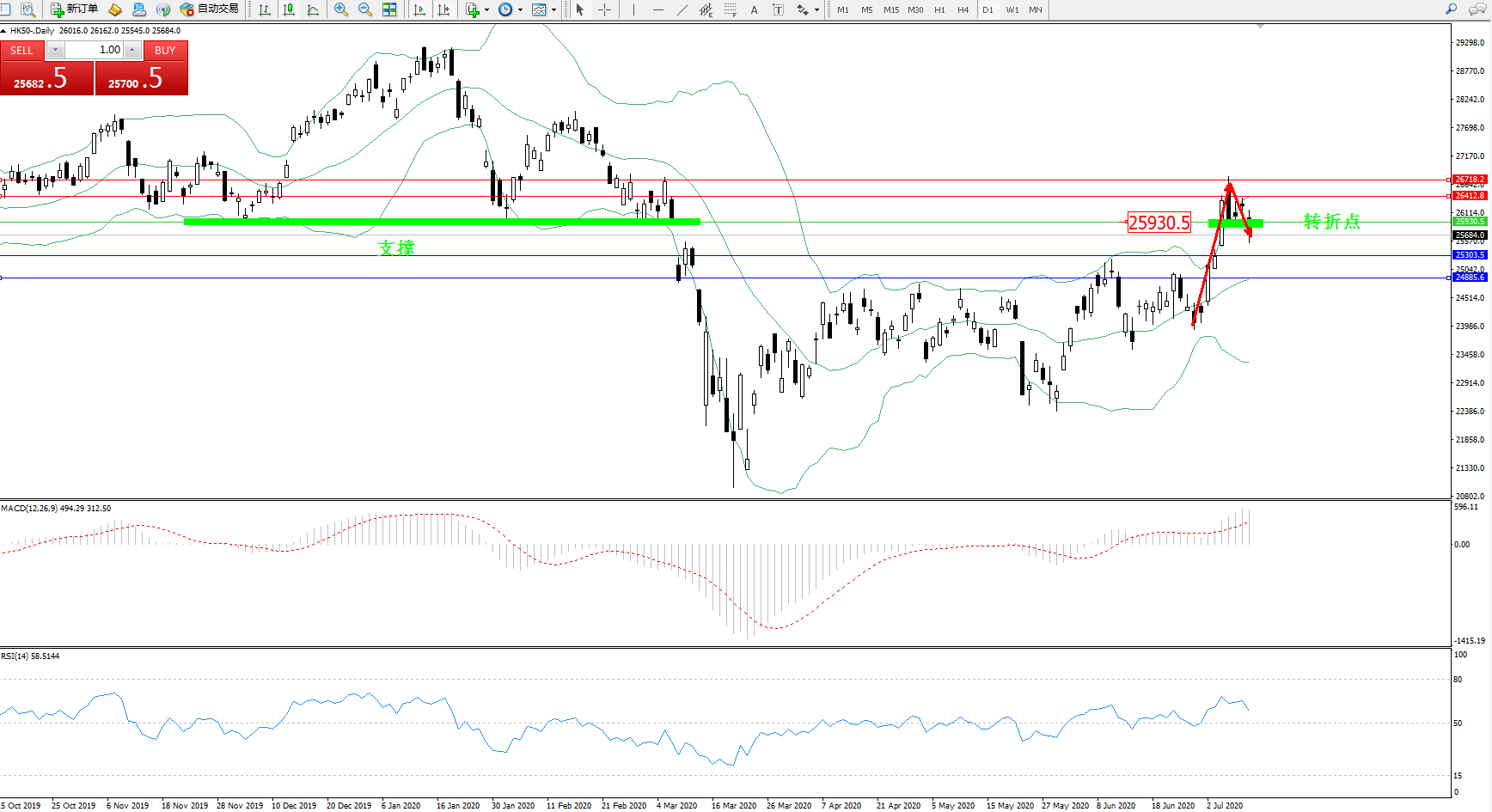恒指HK50 ——日K线图显示: