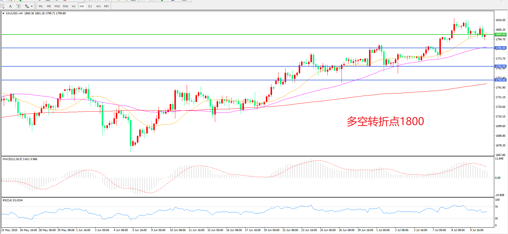 交易策略:在1800.00之上看涨,目标1820.00 1845.00