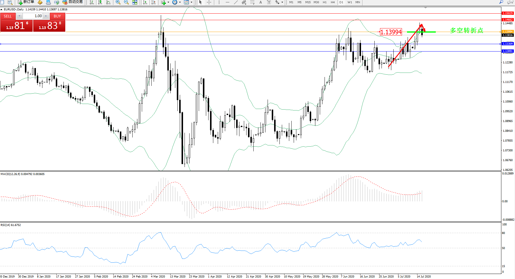交易策略:1.13793下方看跌,目标1.13309、1.12891