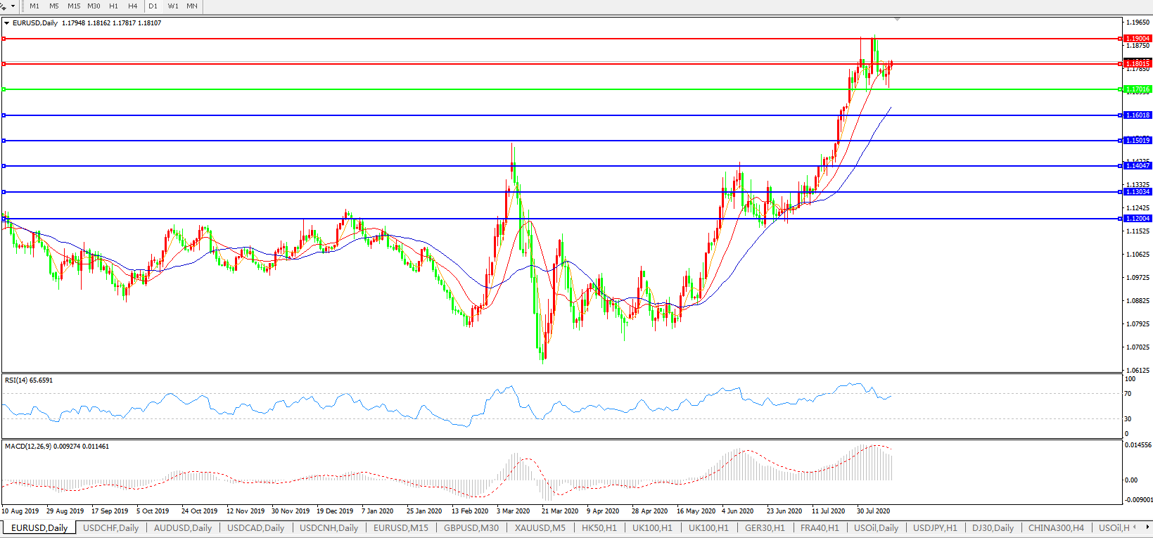 欧元兑美元EURUSD   日线图: