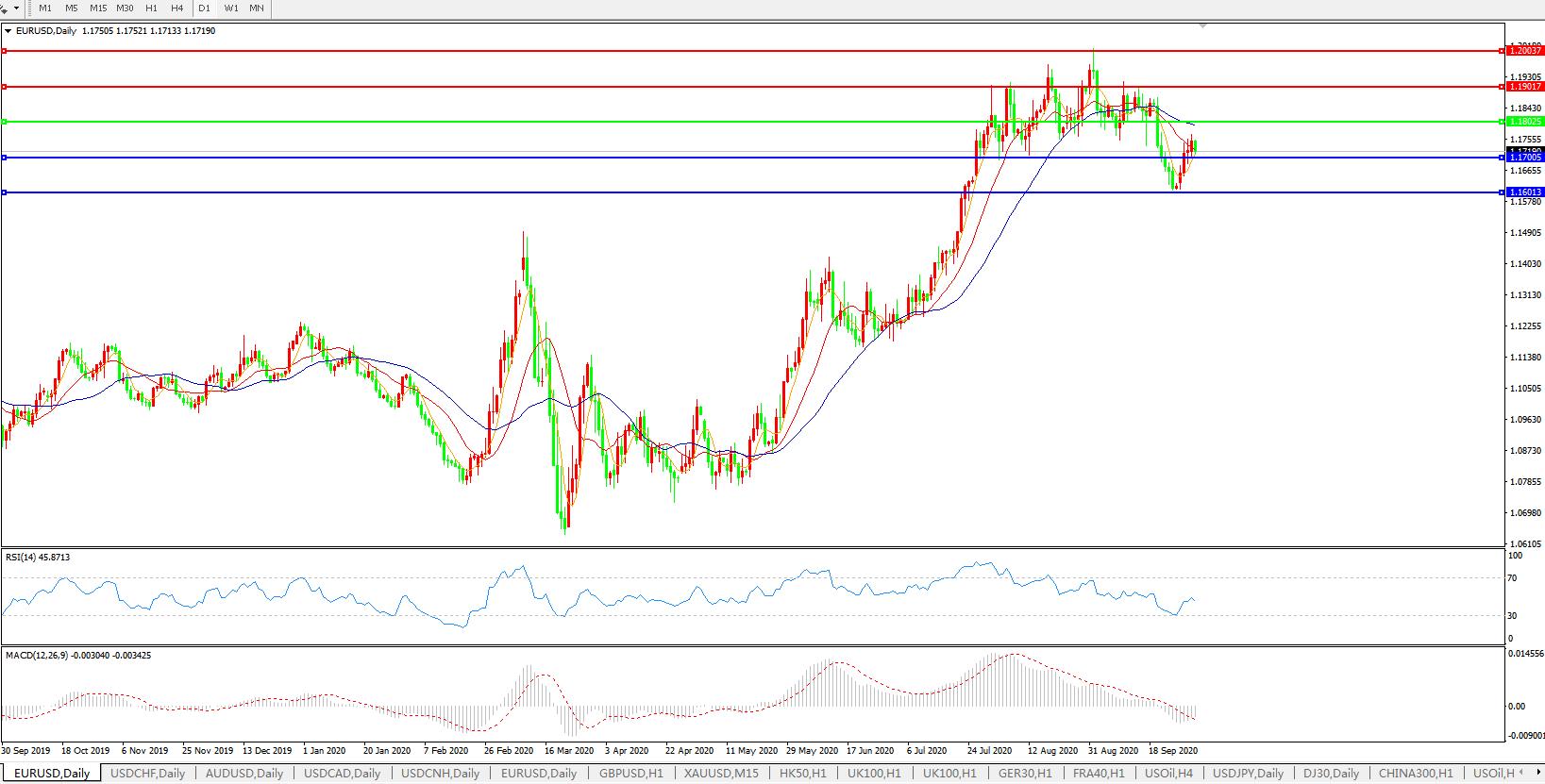 欧元兑美元EURUSD   日线图:
