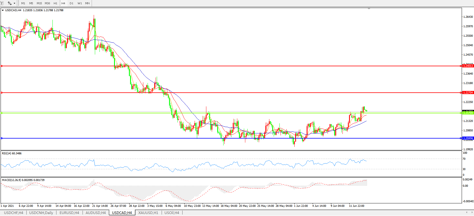 美元兑加元USDCAD    4小时图: