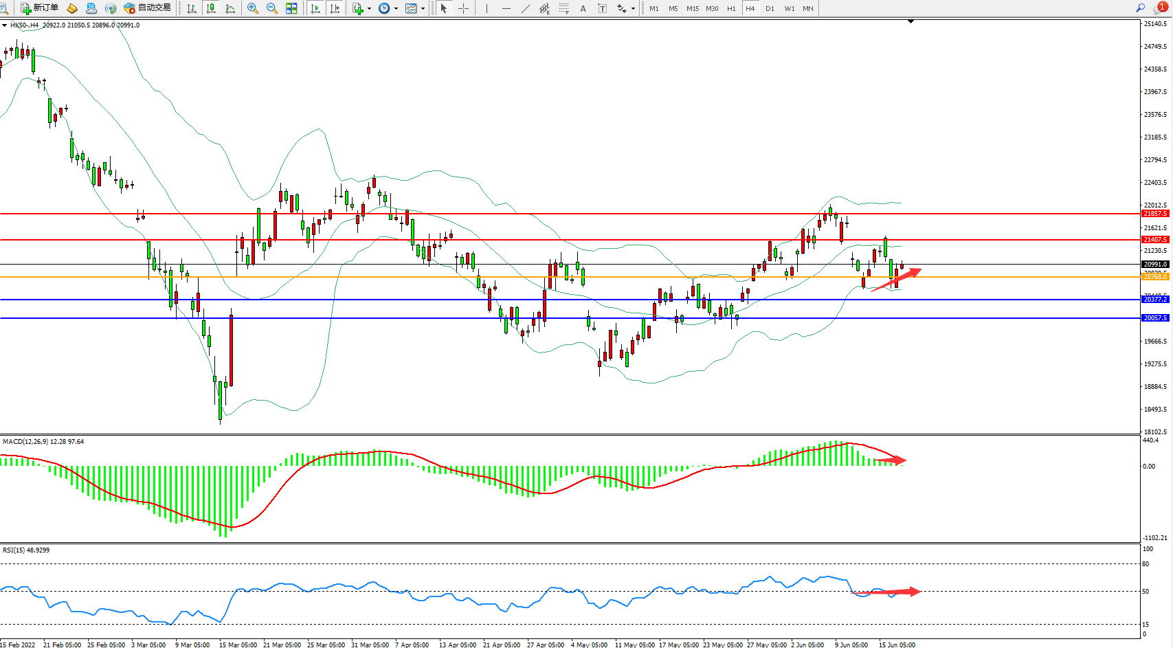 恒指HK50 4小时图
