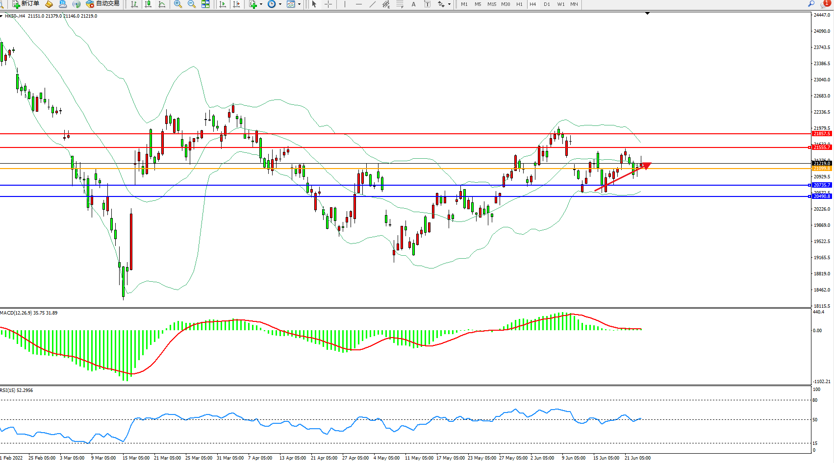 恒指HK50 4小时图