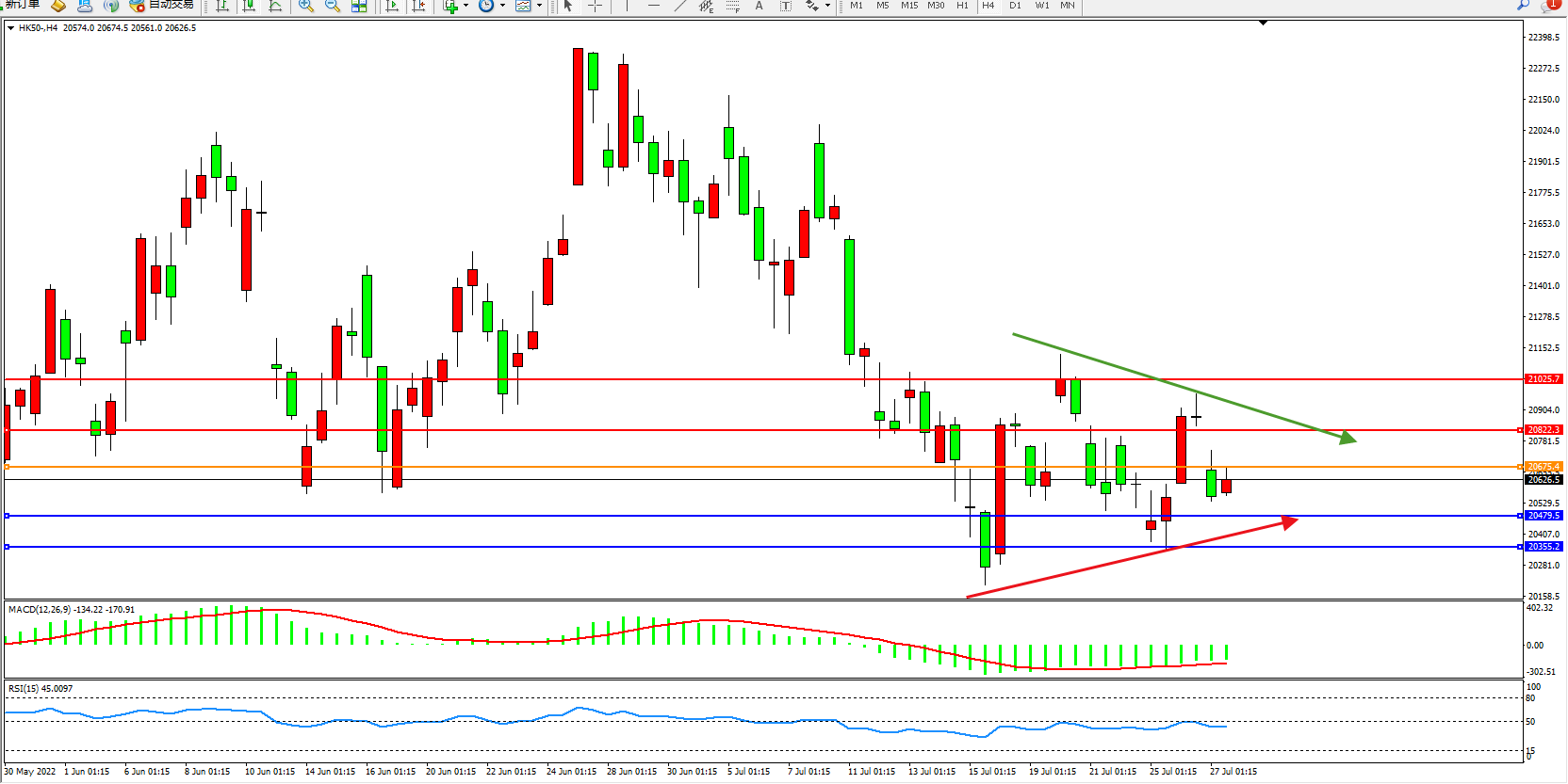 恒指HK50 4小时图