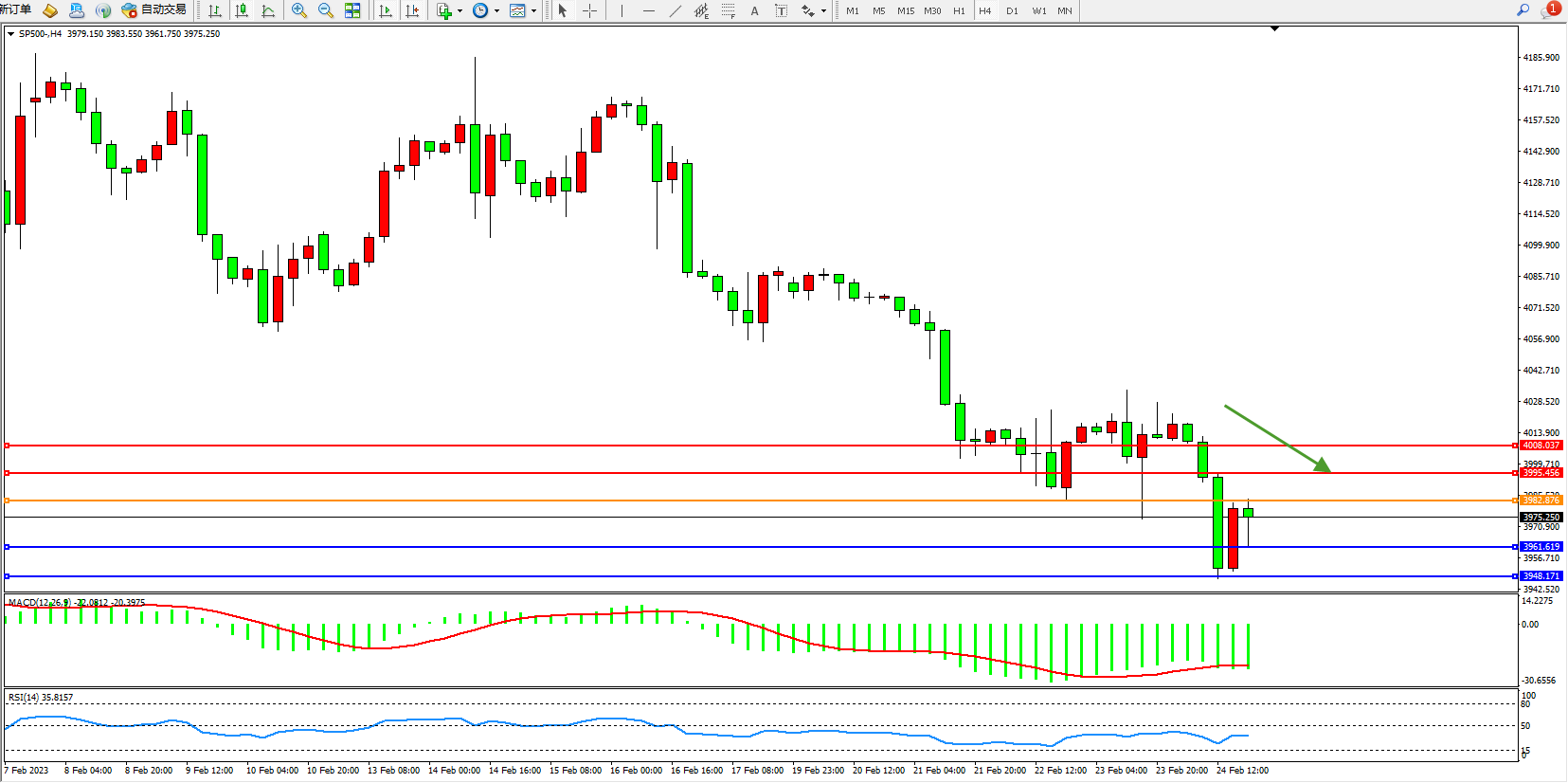 标普SP500——4小时K线图显示: