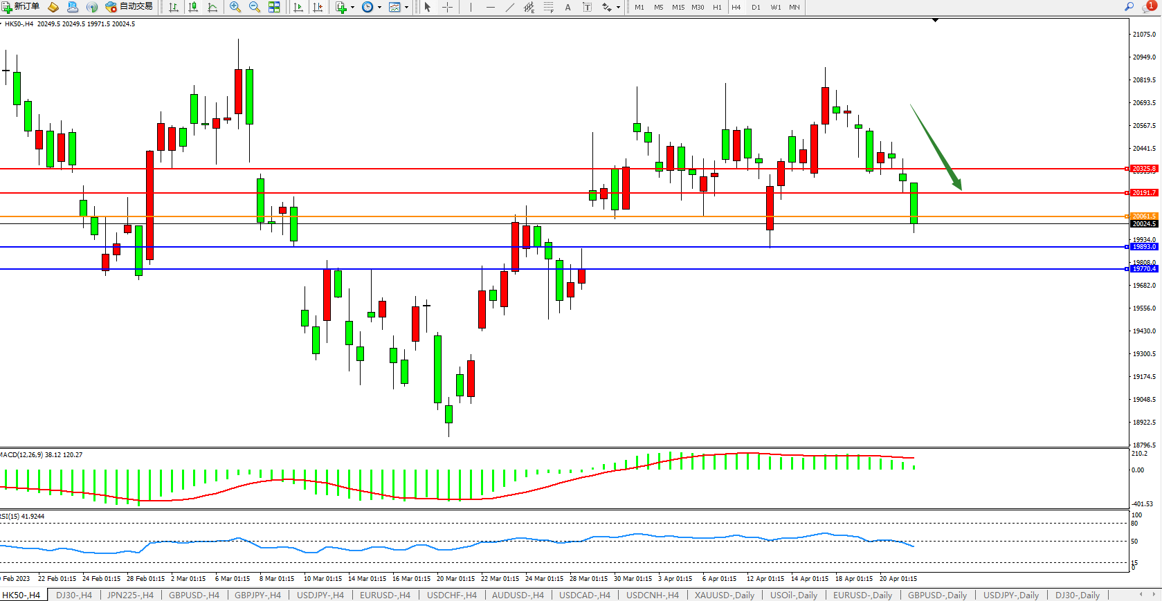 恒指HK50 4小时图